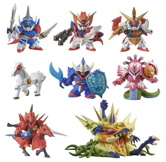 騎士鋼彈系列「阿爾卡斯騎士團」3人與敵方「吉翁三魔團」,再加上阿爾卡斯騎士團篇的最終頭目「魔物THE O但丁」是普通轉蛋辦不到的65mm大尺寸,全都收錄其中!全部9款商品都是全新造型!