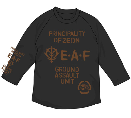 「吉翁地球方面軍七分袖T恤」是同時印上地球方面軍地上部隊標示,以及「NEW YARK」刻印的七分袖T恤。