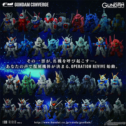 本企劃是為了紀念BANDAI點心事業部推出的食玩系列「FW(FUSION WORKS)」品牌發售突破10周年而舉辦,從大人氣食玩「FW GUNDAM CONVERGE」系列登場的68款機體中,由玩家投票選出『最希望復刻的機體』,並復刻前5名(=REVIVE)。