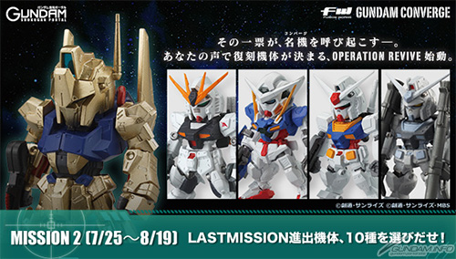 決定「FW GUNDAM CONVERGE」系列復刻機體的人氣投票「FW GUNDAM CONVERGE OPERATION REVIVE」,目前正在鋼彈食玩官方網站「鋼彈食玩入口網」舉辦,第2次投票「MISSION 2」今天7月25日(四)開跑。