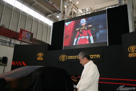 發表會中,有夏亞・阿茲納布爾的聲優池田秀一、吉翁尼克豐田特別宣傳部員Airin Furukawa,也就是SKE48的古川愛李,再加上吉翁尼克豐田特別贊助員、眾議院議員平將明登場。
