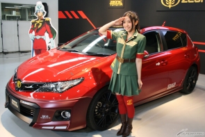 首先是擔任主持人的古川愛李,穿上了首次亮相的吉翁尼克豐田特別宣傳部員制服登場。接著,TOYOTA MARKETING JAPAN 的柳澤俊介表示,自去年在 CHARA HOBBY 2012公開「夏亞專用 AURIS CONCEPT」已經過了1年,熱情地談論終於完成的「夏亞專用 AURIS」市售款。
