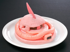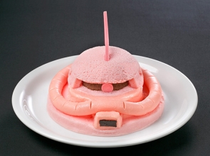 本蛋糕由名古屋的西式糕點名店「黃色南瓜」負責製作。在使用米粉製作的草莓海綿蛋糕中夾入巧克力慕斯,小隊長標記和單眼感測器則以翻糖重現。
