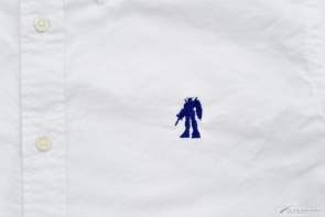 「扣領襯衫」除了在胸口有「RX-78-2 鋼彈」剪影的單點刺繍外,袖口也裝飾有地球聯邦軍標誌的原創鈕扣,簡單又不失設計感。