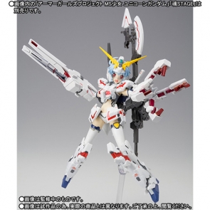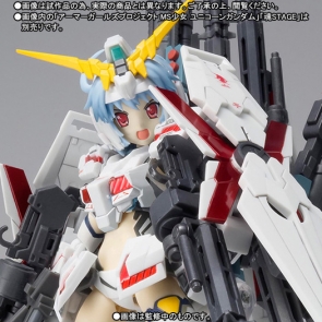 而可以裝備在「MS少女 獨角獸鋼彈」上的全武裝零件,則是使用カトキハジメ的原創標誌款式,除了內附白色Ver.的武裝戰甲2種和紅色眼睛&吼叫的表情零件。全武裝零件當然也可以和ROBOT魂連動喔。