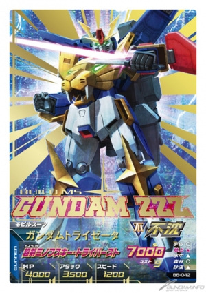 之前在「BUILD MS 第4彈」錦標賽中,作為優勝獎品登場的TRY AGE原創機體「ZZZ鋼彈」,將以完美稀有卡片收錄在本彈中。