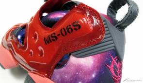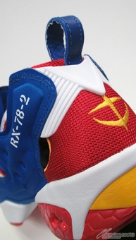 這次合作的款式是為了紀念「INSTA PUMP FURY」誕生20周年而發售的,以『機動戰士鋼彈』代表性的MS「RX-78-2 鋼彈」和「MS-06S 夏亞專用薩克」的意象來做設計,共有兩種顏色款式。「Reebok CLASSIC INSTA PUMP FURY RX-78-2 GUNDAM」是以紅・藍・黄三色加上聯邦軍的標誌設計而成。「Reebok CLASSIC INSTA PUMP FURY MS-06S CHAR'S ZAKU」是以“紅色彗星”夏亞・阿茲納布爾代表色的紅底配色加上吉翁公國軍標誌來設計的款式。