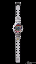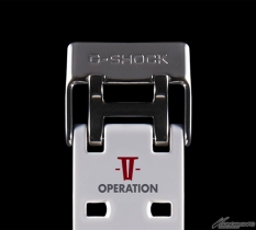 在帶有光澤的白色錶身上,點綴著藍紅黃三色,錶帶的部分採用了不論是在工作或休閒時都適合穿戴的配色來做設計。而且只要點亮LED燈,就會浮現出阿姆羅的個人標誌,背蓋的部分也刻上了聯名款的標誌。