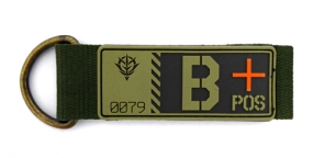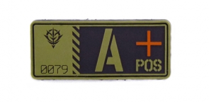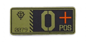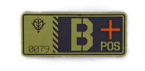 為了讓士兵在受傷需要輸血的時候,可以更快速的處理以提高生存率所使用的血型繡章。本商品是以軍事世界慣例的血型繡章為樣本,融合了吉翁的標誌和一年戰爭年號的設計。