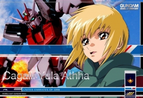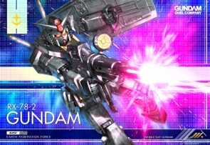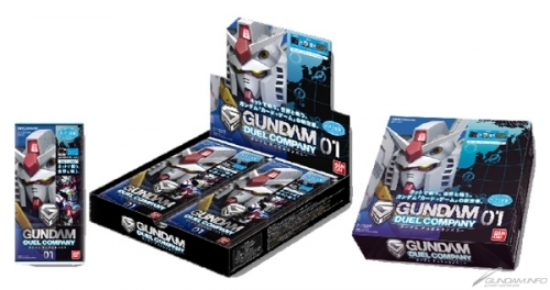 第1彈補充包「鋼彈 :DUEL COMPANY01」中,共有超過10部鋼彈作品的MS和駕駛員一口氣參戰。此外,也收錄了公測β版中未登場的超強力卡片「RARE 5」和「RARE 6」,全部共有103種卡片。