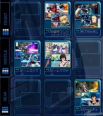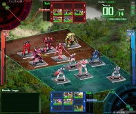 在3×3的格子中,配置MS和駕駛員卡片來編成自己專屬的小隊。由於MS會根據配置在前、中、後列改變自己使用的武器,因此能否看透各MS的特性是非常重要的。
