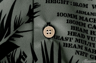 角色服飾&周邊商品品牌COSPA推出後好評熱賣的「陸戰型鋼彈夏威夷衫」,是一件令人聯想到「RX-79[G] 陸戰型鋼彈」潛伏在賈布羅茂密叢林中的夏威夷衫。以一眼就可看到的熱帶植物為主題圖案是一大特點。