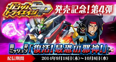 這次任務是紀念3DS「TRY AGE SP」發售的第4彈任務,TRY AGE的原創MS「天王神威鋼彈」再次來襲。戰鬥勝利後,本機體將可作為BUILD MS進行開發。任務期間到10月8日(三)為止。