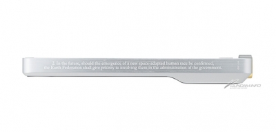 ▲機器側面刻的是、在『機動戰士鋼彈UC』中扮演重要關鍵的「拉普拉斯之盒」上的「夢幻的宇宙世紀憲章」一文!
