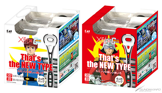 本次推出的聯名款,是在包裝設計加上圖案的特別樣式「Xfit新人類包 阿姆羅」與「Xfit 新人類包 夏亞」,並於即日起在全日本生活用品中心及藥妝店、連鎖量販店、便利商店、官方網路商店等處發售。產品內附有Xfit限定的原創卡片,可以在卡片遊戲「GUNDAM :DUEL COMPANY」中使用。