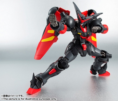 「ROBOT 魂 天王鋼彈」是跟「神威鋼彈」成對的機體,並且是一款將動作性發揮到極限的立體商品。透過新機軸的動作性和有各種變化的手部零件能重現許多極具動感的姿勢。此外,還附贈了必殺的暗黑掌等豐富的的手掌零件,可以擺出許多的姿勢。