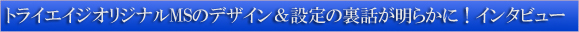 我自己第一次看到「完美鋼彈」時,覺得這台機體雖然沒有在劇中登場,但設計卻非常華麗帥氣,讓我受到非常大的衝擊。我希望也可以讓現在的小孩子們感受到這種衝擊。只要有TRY AGE的原創MS,我想是不是也可以做出有著相同衝擊感的東西呢。