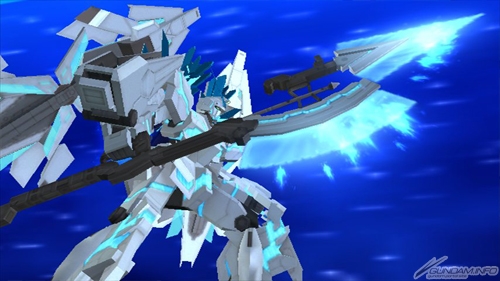 為什麼不早點告訴我啊~!如果全部裝到巴納吉的獨角獸上,不是會變得超厲害嘛!!艾隆先生、艾隆先生!!現在也可以取得並加上去對吧?」「……拓也,即使是我心胸寬大也會生氣的喔?」全武裝獨角獸鋼彈的B計畫便似乎是這樣來的。B則有著藍色的意味在。