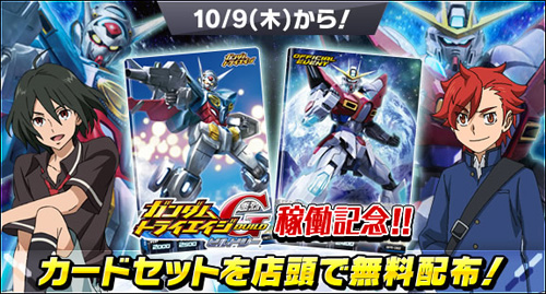 為了紀念電子卡片遊戲「鋼彈TRY AGE」的最新彈「BUILD G 第1彈」開始運作,「BUILD G 第1彈運作記念!店家免費大放送」活動將在運作開始日,也就是明天10月9日(四)起在全國的指定店家舉辦。