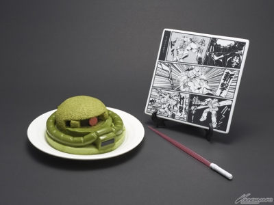 數度向阿姆羅搭乘的「RX-78-2 鋼彈」挑戰,可謂終極對手般的量産機「MS-06 薩克」。這次推出了重現機體頭部的蛋糕。