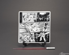 此外還附贈描繪許多薩克英勇場面、有著原創插圖漫畫的盤子「被擊墜薩克盤」,和「光束軍刀」外型的叉子。可以帶著阿姆羅斬斷薩克的心情來吃蛋糕。