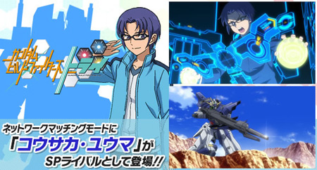 網路配對模式當中,保存在伺服器內的全國玩家資料將化身為對手在各區域中登場,是可以充分享受戰鬥樂趣的模式。這次登場的「高坂祐馬」是目前正在好評播送中、『鋼彈創鬥者TRY』的角色。他是「TRY FIGHTERS」隊的其中一位成員,使用改造自Re-GZ的鋼彈模型「電光鋼彈」。