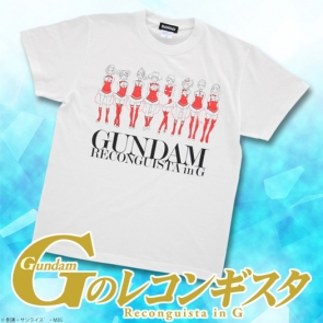 好評播送中的TV版動畫『鋼彈 RECONGUISTA IN G』,推出了許多新圖樣的T恤。除了印有聖花學園啦啦隊少女們的「啦啦隊少女圖樣」外,還有「G-自我圖樣」、「G-奧秘圖樣」、「貝利圖案」、「阿依達圖樣」等等,商品非常豐富。