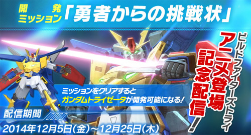 本次任務是為了紀念「GUNDAM TRY AGE」原創BUILD MS「ZZZ鋼彈」在好評播送中的TV版動畫『鋼彈創鬥者TRY』中登場而推出。成功過關就可以開發「ZZZ鋼彈」。