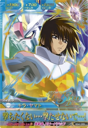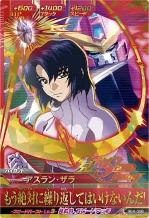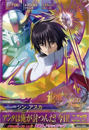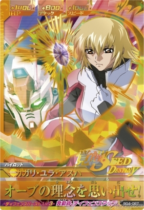 這次收錄的活動卡是,『機動戰士鋼彈SEED DESTINY』登場的「真・飛鳥」、「煌・大和」、「阿斯蘭・薩拉」、「卡佳里・由拉・阿斯哈」全4種。
