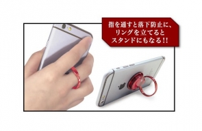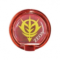 「智慧型手機環型直立架」可以裝在智慧型手機的背面,穿過手指訪只手機掉落,或當作直立架來使用,便利性非常拔群的一項商品。有「吉翁」、「夏亞專用薩克」、「薩克」3種,各1,382日圓(含稅)。