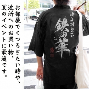 「鐵華團甚平」是以『鐵血孤兒』中登場的「鐵華團」為設計形象的方便穿著甚平和短褲套組。質地非常柔軟,透氣性和觸感都很好,可以在房間休息時、稍微外出購物時和活動時穿著。