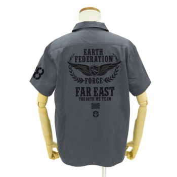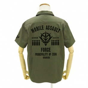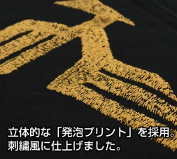 「夏亞披風的刺繡風印刷連帽外套」,是以『機動戰士鋼彈』中夏亞的披風為設計形象的輕薄衣物。披風圖案的部分藉由發砲印刷,表現出立體的刺繍風格。