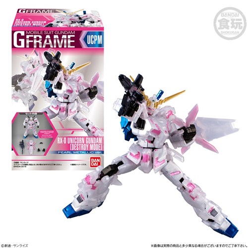 本商品是將「獨角獸鋼彈(毀滅模式)」施加珍珠金屬塗裝成型的特別版本。塗裝部分採用金屬塗裝,並於全身追加G FRAME的原創標誌。