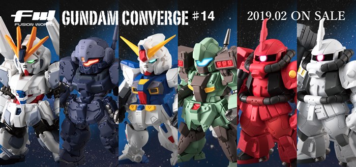 將精密細節“CONVERGE=彙集”於一身的食玩系列「FW GUNDAM CONVERGE」第14彈,於2月18日(一)起在日本國內玩具店、家電量販店、網路商店等通路發售。共6款,售價為500日圓(未稅)。
