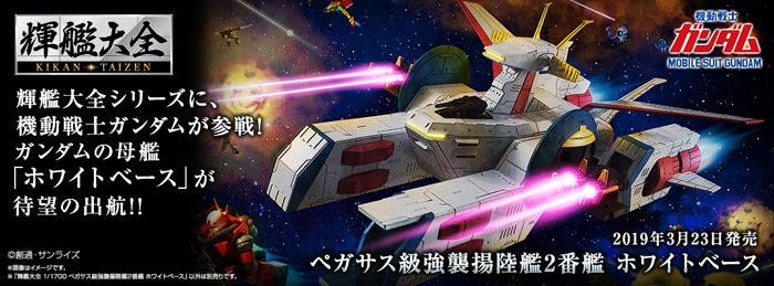 「輝艦大全(KIKAN*TAIZEN)」是以“大人的艦隊收藏”為題材,以精密的造型、充滿厚重感的塗裝,以及光澤表現為製作概念來立體化的塗裝完成品系列。藉由本次推出的「白色基地」,實現鋼彈作品眾盼已久的首次參戰。