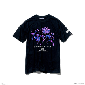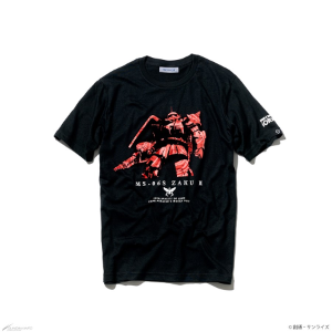 帥氣的金箔印刷「標題LOGO T恤」、強調三重配色的「三重配色圖案T恤」、印有夏亞・阿茲納布爾愛機的「夏亞專用薩克II圖案T恤」、以柔軟質感感受復古感的複合材質「夏亞・阿茲納布爾圖案T恤」全4種T恤登場。