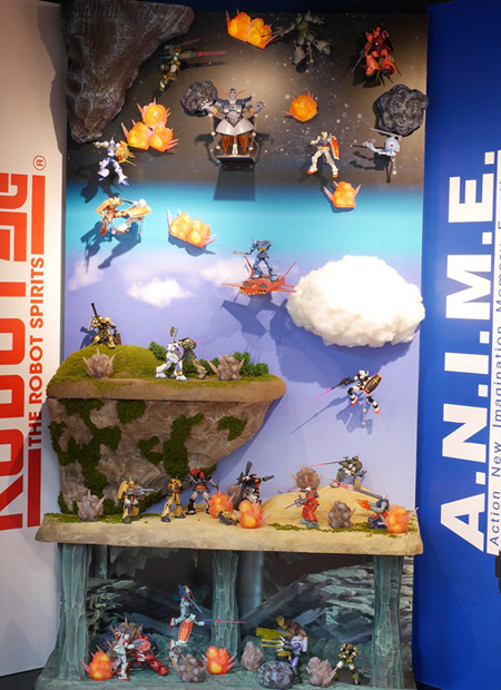 現正舉辦中的「80年代機器人特輯」,將使用機器人模型「ROBOT魂」系列,展示充滿魄力的場景。而除了首次公開的「ROBOT魂 吉翁克 ver. A.N.I.M.E.」(參考商品)外,還有好評開放預購中的「ROBOT魂 濕地戰用薩克 ver. A.N.I.M.E.」、預定8月在一般店面、網路商店發售的「ROBOT魂 吉昂 ver. A.N.I.M.E.」等商品登場。在各種舞台上重現戰鬥情形以及充滿魄力的展示,請務必前往會場看看。