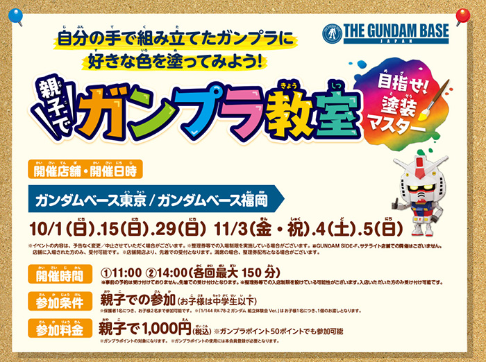 ※每位子女可領取一組「1/144 RX-78-2 鋼彈 組裝體驗會Ver.」。