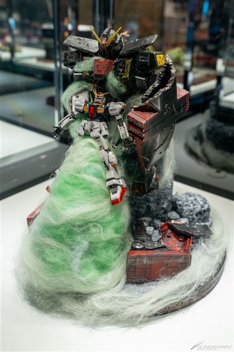 講評:製作、塗裝、構圖這3個面向都有著頂尖的水準。以一年戰爭登場的機械為藍本,但也使用了『00』和『SEED』等宇宙世紀以外的鋼彈零件進行製作。飛行載台也結合了各種鋼彈模型進行製作,但一眼看來也完全沒有異樣。整體的水準都非常高。