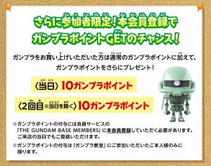 此外,活動參加者只要在各設施購買鋼彈模型,除了平常的鋼彈模型點數外,還可以再獲得額外的點數。