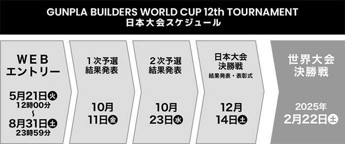 除此之外的詳細報名資格和規定等事項,請查閱GUNPLA BUILDERS WORLD CUP官方網站。