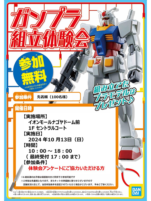 10月13日在THE GUNDAM BASE SATELLITE 名古屋門市舉辦「鋼彈模型組裝體驗會」!活動免費參加!
