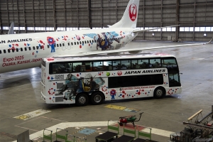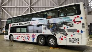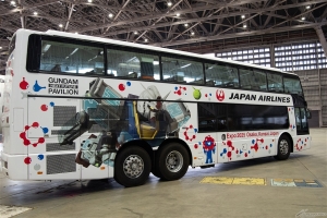 揭幕式除了Myaku Myaku(脈脈)也有登場外,還展示限定鋼彈模型及萬博展期中在日本國內各地運行的「JAL×鋼彈 餐廳巴士」。
