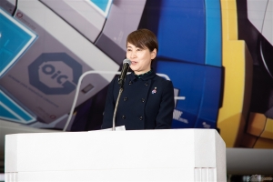 揭幕式上請到日本航空 常務執行董事 西日本分公司總經理宮坂久美子、萬代南夢宮控股公司 董事桃井信彥、2025年日本國際博覽會協會 副秘書長 高科 淳登台。各自發表對這個計畫的感想。