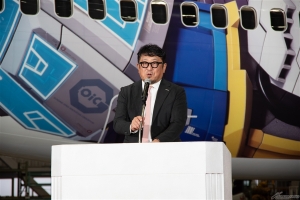 桃井表示「如果沒有日航的翅膀,我想就沒辦法將日本作品傳播給世界。我希望藉由讓『JAL鋼彈JET』翱翔於天際,將夢想和希望還有感動傳達給全世界的人們,特別是肩負未來的孩子們」