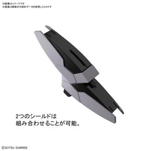 步槍搭載了能變形為收納狀態的變形機構,為組裝的狀態可和「HGBD:R 異鋼彈武裝組(另售)組合。此外,2個盾牌也可互相組裝。