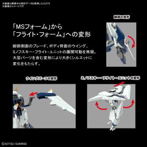 反映在各零件上的精密細節呈現出密度和分量。身軀背面的翅膀、腿側面的檔板、除了可以展開米諾夫斯基飛行組件之外,藉由腿部及大型零件的變形還能夠重現「MS型態」至「飛行型態」的過程。