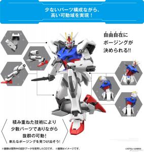 雖總共只有79個少數零件,以及簡易組裝的程序,但組裝仍有著寬廣的可動範圍,可以擺出各種姿勢。將BANDAI SPIRITS HOBBY部門引以為傲的各級別鋼彈模型培育出的技術,結合在「ENTRY GRADE 攻擊鋼彈」上。