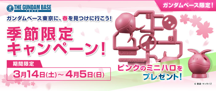 活動中 ,只要跟隨鋼彈基地Twitter帳號,拍攝春天規格的製作室照片加上「#gundambasetokyo」或「#G製作室」標籤發推,並給工作人員看過畫面,就會贈送粉紅色迷你哈囉。