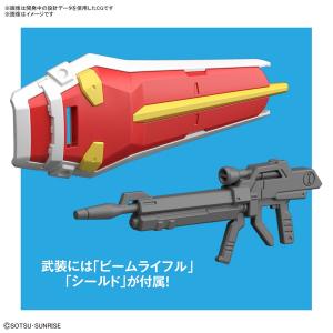 軀體、腿部、手臂的可動部位確保大幅可動範圍,可應對大膽的動態姿勢。攝影機眼的黑色輪廓用零件互相間隔造成的陰影呈現,裝備內附光束步槍和盾牌。